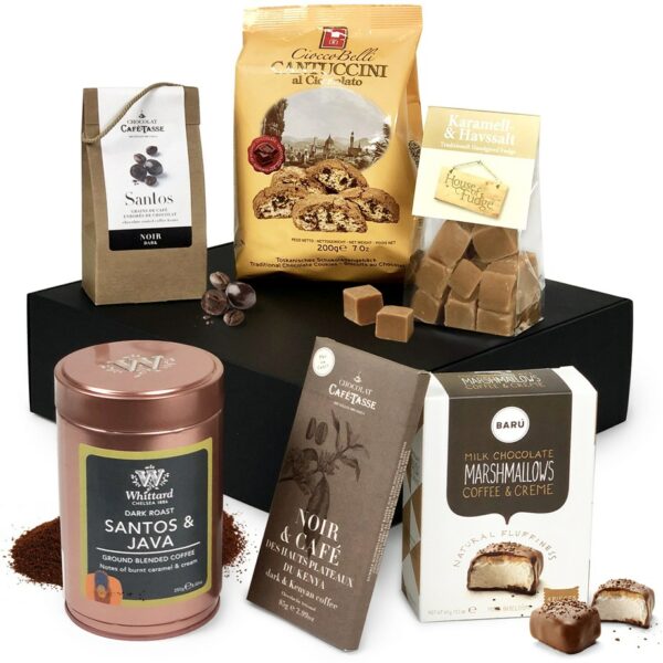 Till kaffeälskaren! En presentlåda fylld med smarriga delikatesser för den som tycker om kaffe. Du kan välja att få kaffelådan fint inslagen. Perfekt att ge bort i present eller julklapp.